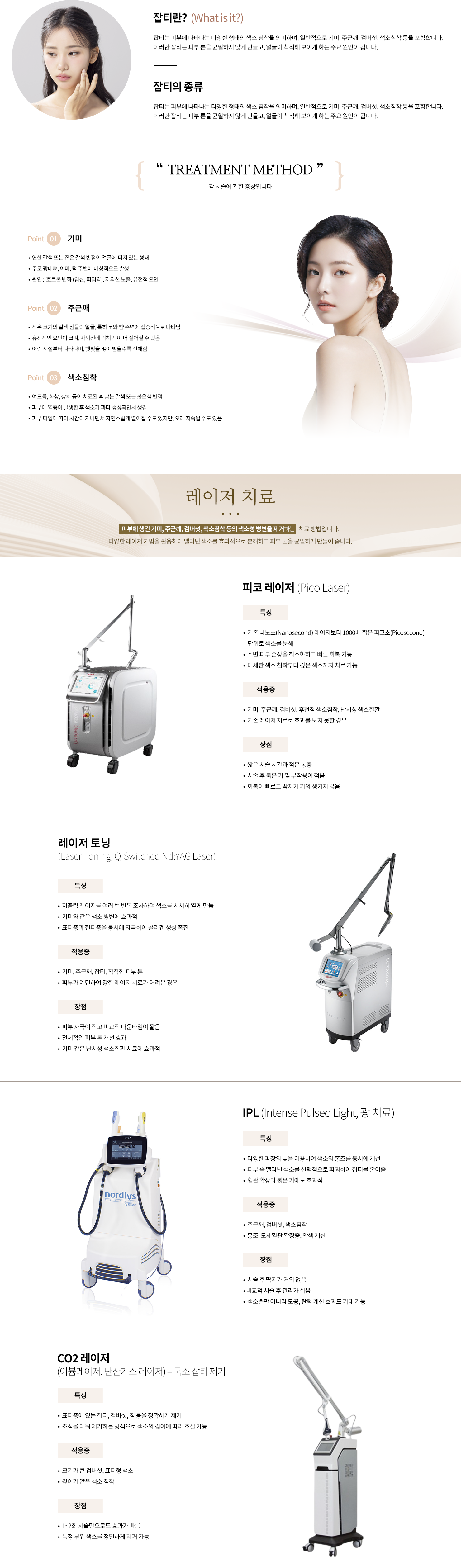 • 몇 번의 시술이 필요한가요? 잡티 종류와 피부 상태에 따라 다르지만, 일반적으로 3~5회 시술이 권장됩니다.